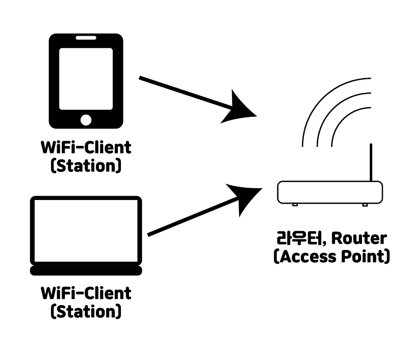 STA는 Station의 약자이고, AP는 Access Point의 약자입니다. 보통 공유기나 wifi 관련 모듈에서 많이 접하셨을 법한 단어입니다.