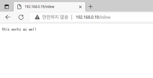 192.168.0.1/inline 에는 뒤에 나오는 "this works as well"를 보내는 코드