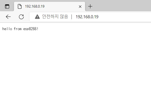 이전에 설정했던 handleRoot 함수의 내용이 실행된 것을 볼 수 있습니다. 192.168.0.19/inline, 192.168.0.19/gif에도 각각 접속해서 정확하게 표시가 되는지도 확인합니다.