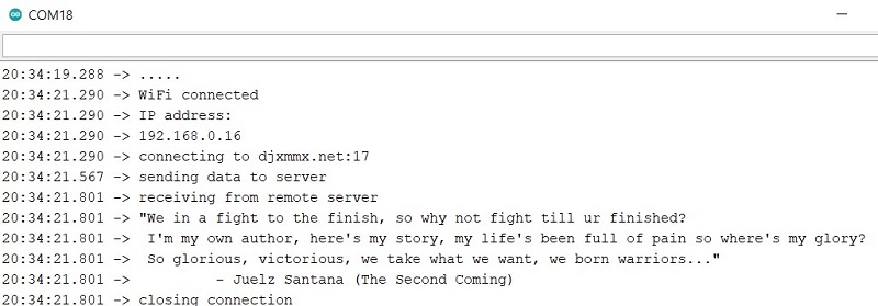 This sketch establishes a TCP connection to a "quote of the day" service.